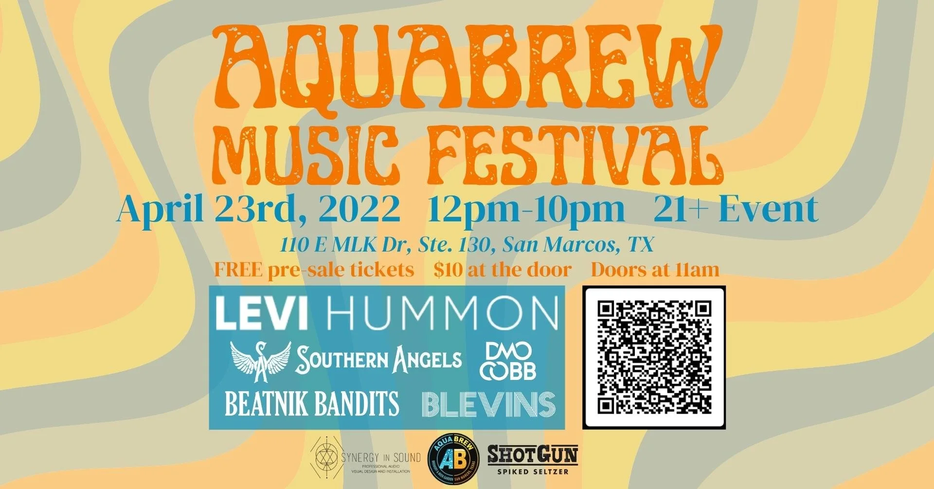 Doors open at 11:00AM and live music kicks off at noon. The show runs from 12:00PM- 10:00PM at AquaBrew located at 110 E MLK Dr., San Marcos, TX 78666. The event will be ticketed, tickets are free in advance or $10 day of the event. Please go to EventBrite and get your free tickets. https://www.eventbrite.com/e/aquabrew-music-festival-21-tickets-304058526237?aff=ebdssbcitybrowse